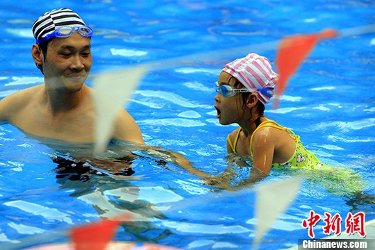 7月26日,上海气温创下历史新高,达到40.6℃,一举打破了1934年40.2℃的历史纪录,成为上海有气象史以来最热的一天。图为泳池成人们避暑最佳地方。中新社发 潘索菲 摄