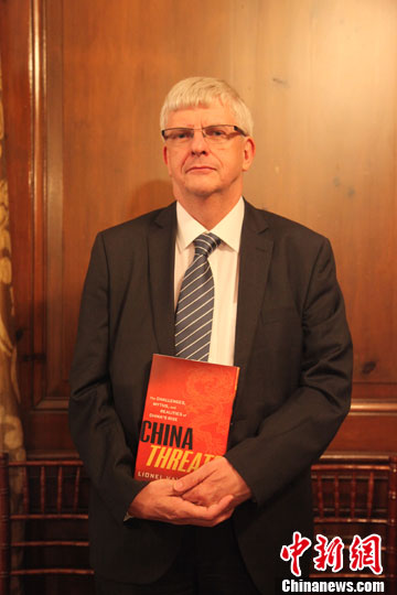 当地时间7月25日晚,法国前外交部官员、著名汉学家魏柳南先生撰写的《中国的威胁?》英文版在纽约举行了发布仪式。图为魏柳南先生及其《中国的威胁?》英文版。中新社发 阮煜琳 摄