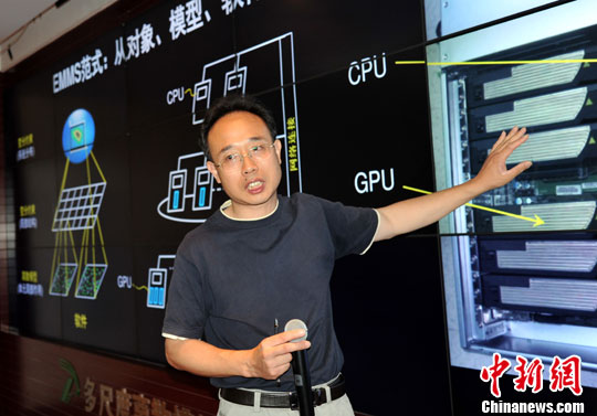 7月26日,中国科学院过程工程研究所多相复杂系统国家重点实验室内,30年来一直致力于多相复杂系统的多尺度方法及其在过程工程中应用研究的能量最小多尺度(EMMS)课题组,演示该课题组2011年10月在国际上首次建成的“虚拟过程工程”平台。中新社发 孙自法 摄