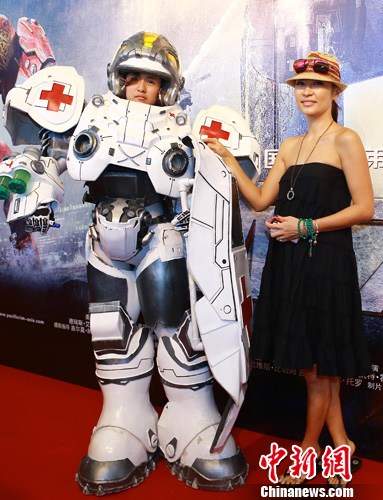 7月29日,好莱坞3D科幻巨作猛片《环太平洋》在北京举办首映礼和内地首场试映会。中新社发 李学仕 摄
