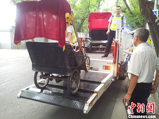 图为近日北京警方清理故宫周边给摩的黑导游。中新社发 杨可佳 摄