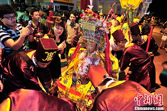 湄洲妈祖金身“飞抵”海南 参加佑南疆祈福活动(2)