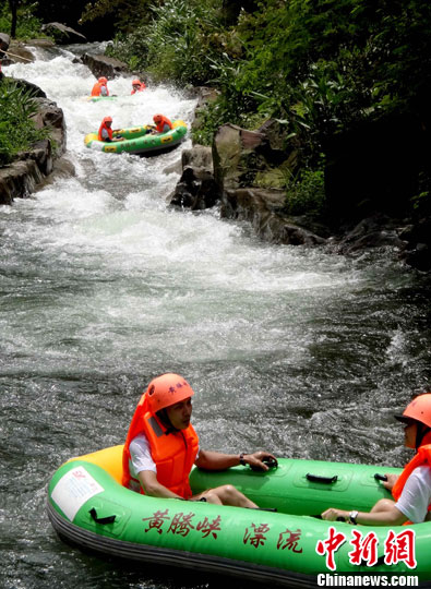 7月31日,2013广东国际旅游文化节百日倒计时活动在清远市清城区黄腾峡漂流景区举行。中新社发 刘卫勇 摄