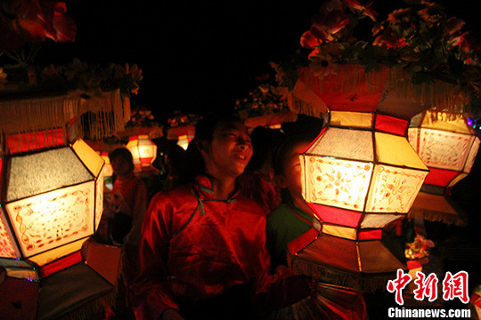 它以莲花灯和马灯为主体,由彩旗灯、香案、杨柳灯、日月灯、莲花灯、盾牌、马灯、牌灯、番联灯、花神灯、茶篮灯、蚌壳、船仔、鳌鱼灯等十几种灯组成,中间穿插民乐队。 王剑 摄