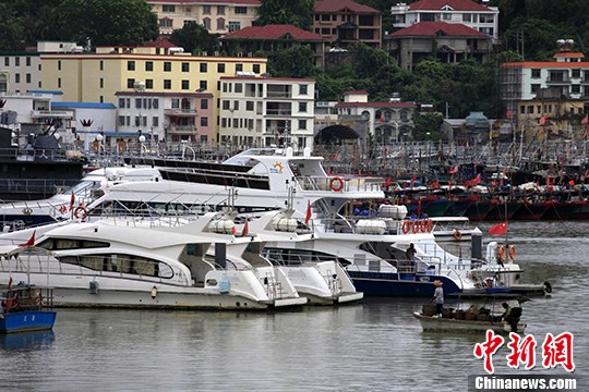 8月2日,渔船在三亚港避风。中新社发 尹海明 摄