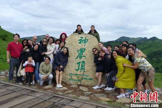中外游客着冬装登上神农顶。罗永斌 摄