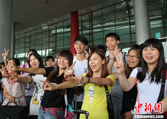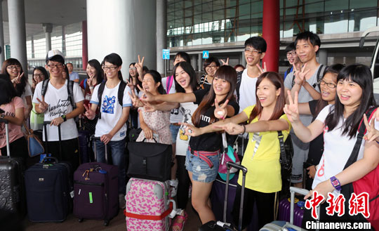 8月2日,2013年参加“中国寻根之旅”夏令营的澳门青少年抵达北京。2013年海外华裔及港澳台地区青少年“中国寻根之旅”夏令营即将在北京开幕。中新社发 韩海丹 摄