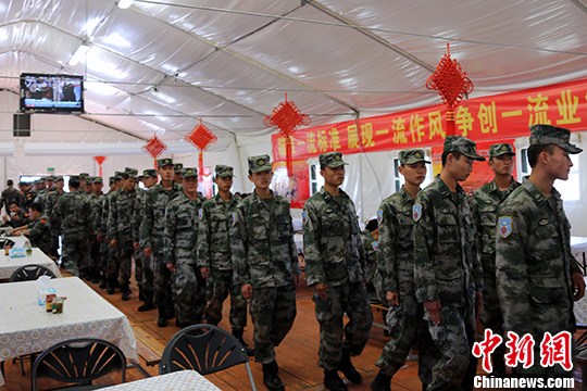 图为官兵们进入餐厅准备就餐。中新社发 李祥辉 摄