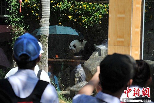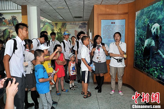 8月5日,来自台湾嘉义县永庆高中的34名师生到福州熊猫世界参观。本次活动是“第十届两岸青年夏令营”系列活动之一。中新社发 吕明 摄