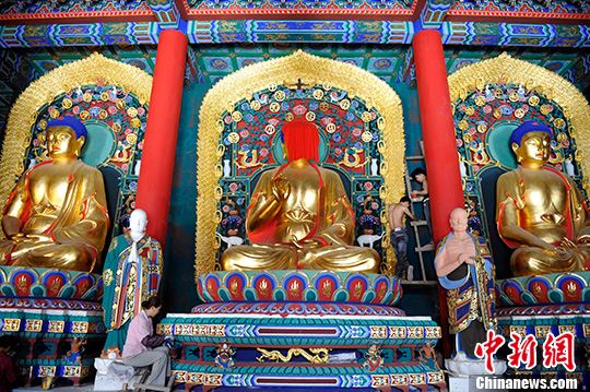 8月5日,山西太原龙华寺主体修缮完毕,开光在即。中新社发 韦亮 摄