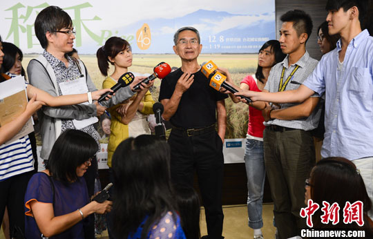 8月5日,台湾编舞家林怀民在台北两厅院谈新舞蹈作品《稻禾》创作起源。中新社发 刘震 摄