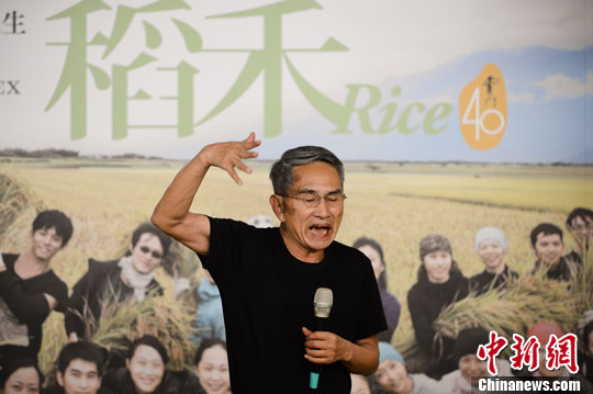 8月5日,台湾编舞家林怀民在台北两厅院谈新舞蹈作品《稻禾》创作起源。中新社发 刘震 摄