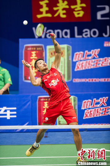 8月5日,2013羽毛球世锦赛在广州天河体育中心开拍。在男单首轮比赛中,持外卡参赛的中国选手林丹以2-0轻取美国选手蓬奈拉特晋级次轮。中新社发 龙宇阳 摄