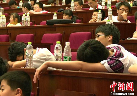 青少年暑期科技活动赶场听讲座 因太累睡倒一片