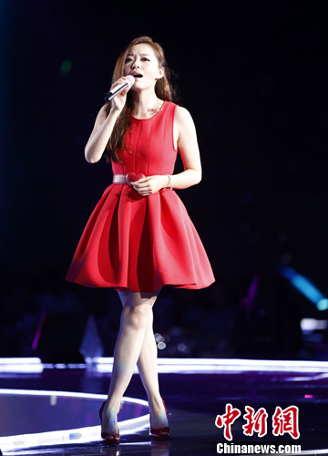 8月13日晚,“七夕中国2013情歌演唱会”在北京举行,张靓颖献唱《真爱的味道》。中新社发 杜洋 摄