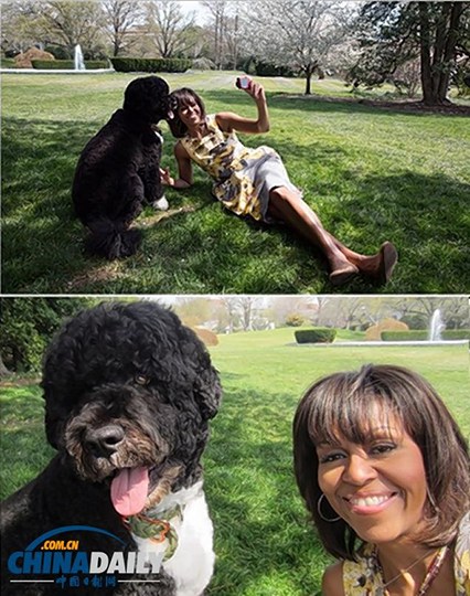 参与互动(0) 据美国媒体报道,自拍浪潮侵袭白宫,美国第一夫人米歇尔也难以抗拒自拍的诱惑,日前在白宫草坪上拍下了自己与美国“第一犬”一起玩耍的珍贵瞬间。而这一切也被摄影师纳入镜头,并在8月10日,她将自己与爱犬“波”的自拍照发布在自己的Instagram官方账号上。