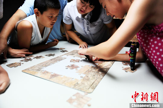 8月20日,在陕西省历史博物馆内,不少市民对“壁画拼图”产生了兴趣。中新社发 张远 摄