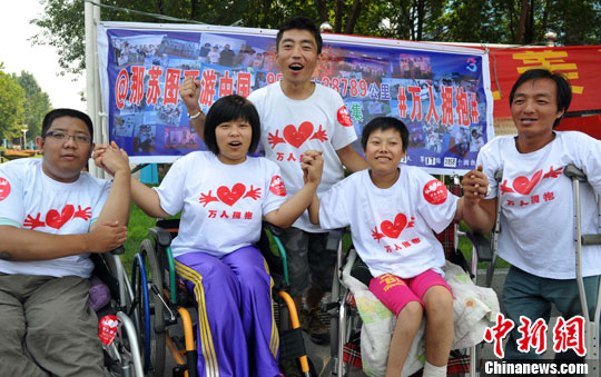 图为河北残障人士来到现场,手挽手、心连心支持那苏图。中新社发 翟羽佳 摄