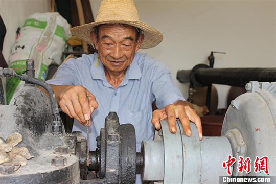 老郭把抽水泵当成自己的子女来照顾,上机油做保养都亲自动手。朱家梅 摄