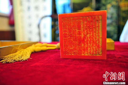 8月21日,沈阳故宫展出的“清太祖高皇帝谥宝”。中新社发 于海洋 摄