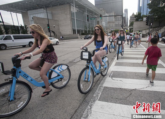 Divvy是芝加哥的一个新自行车共享系统。中新社发 林戈 摄