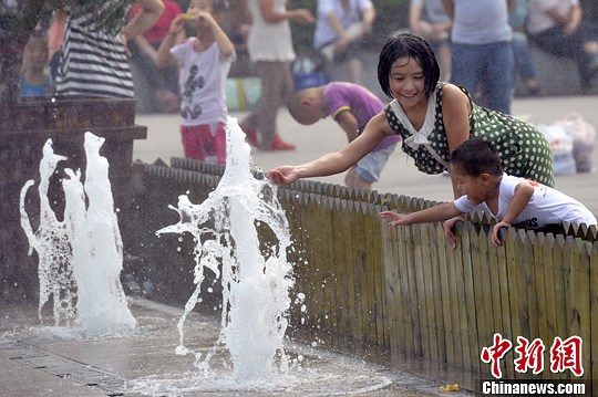8月22日,山西太原儿童戏水降温。当日是出伏后第一天,北方多地气温不降反升,山西太原当日最高气温达到37℃左右。中新社发 韦亮 摄
