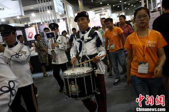 8月22日,香港时尚购物展在青岛国际会展中心开幕,香港警察乐队即场演奏了多首雄浑的音乐作品,助兴香港购物展。中新社发 徐崇德 摄