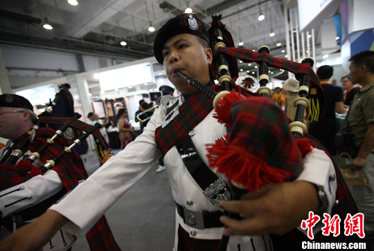 8月22日,香港时尚购物展在青岛国际会展中心开幕,香港警察乐队即场演奏了多首雄浑的音乐作品,助兴香港购物展。中新社发 徐崇德 摄