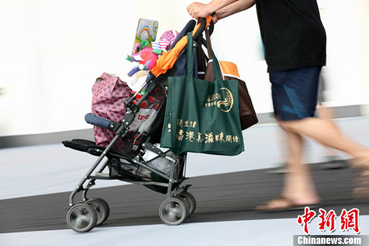 8月22日,香港时尚购物展在青岛国际会展中心开幕,青岛市民蜂拥而来,抢购香港食品。中新社发 徐崇德 摄