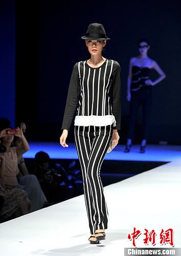 图为模特展示服装作品。中新社发 刘卫勇 摄