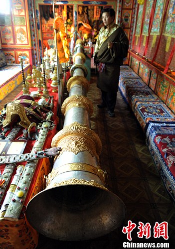 图为传习所陈列室内,一只手工制作的银制大号令人惊叹。中新社发 刘忠俊 摄