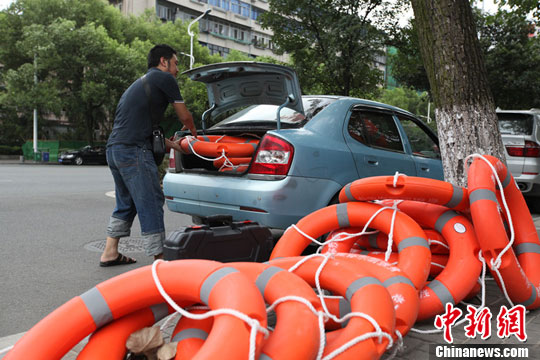 湖北宜昌市民自费在江边挂上救生圈(2)