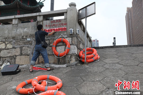 湖北宜昌市民自费在江边挂上救生圈(3)
