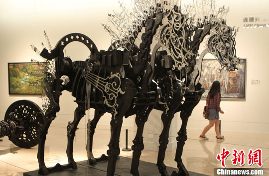 8月26日,由中国美术馆、台湾美术馆、中华文化联谊会、财团法人台湾美术基金会联合主办的“交互视象——2013海峡两岸当代艺术展”在北京中国美术馆开幕,展览展出了36位艺术家的作品,其中18位艺术家来自中国大陆,18位来自台湾。中新社发 钱兴强 摄