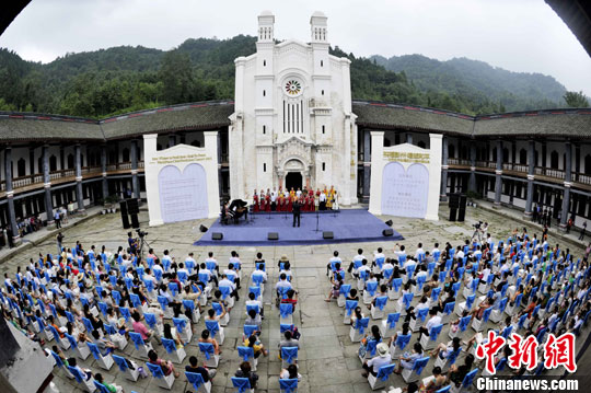 8月27日,“祝福彭州·唱颂和平”——世界和平合唱团2103彭州音乐会在白鹿镇举行。图为音乐会现场。安源 摄