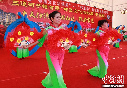 社区居民在表演舞蹈《欢天喜地》。曾照美 摄