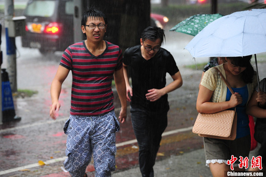 8月31日下午,深圳市气象台发出黄色雷电、橙色暴雨信号,市区再次出现强降雨,气候突变给市民出行带来不便。中新社发 陈文 摄