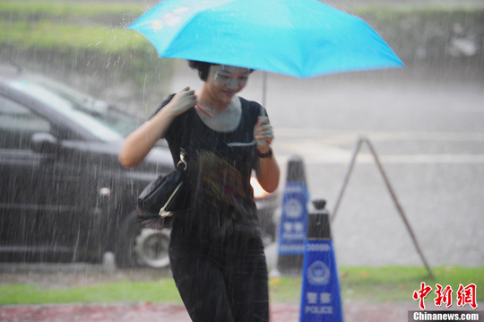 8月31日下午,深圳市气象台发出黄色雷电、橙色暴雨信号,市区再次出现强降雨,气候突变给市民出行带来不便。中新社发 陈文 摄