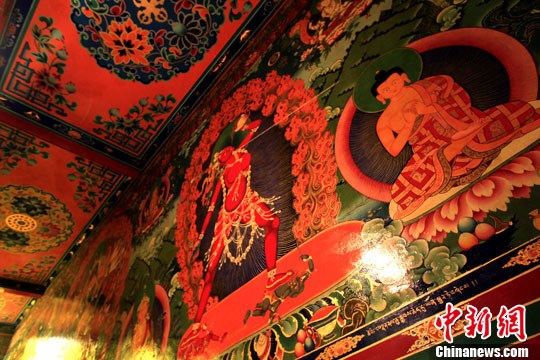 贡萨寺内精美的壁画(9月3日下午摄)。中新社发 胡友军 摄