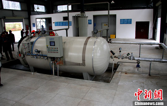 图为医疗废物集中处置中心用来高温蒸汽处理废物的处理锅。赵延 摄