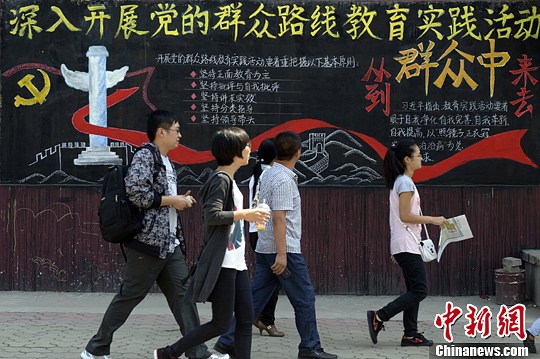 9月7日,百年高校山西大学迎来新生开学日,校园内的时政宣传黑板报吸引了许多新生及家长的关注。中新社发 韦亮 摄