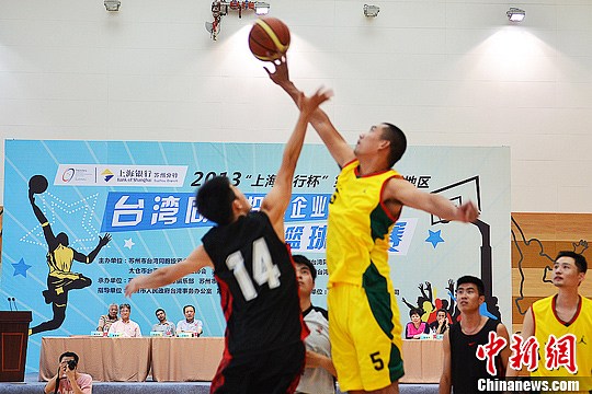 9月7日,第二届苏州地区台湾同胞投资企业协会篮球联赛在江苏苏州拉开战幕,共有十五支台资企业球队报名参赛。图为比赛双方争球。王思哲 摄