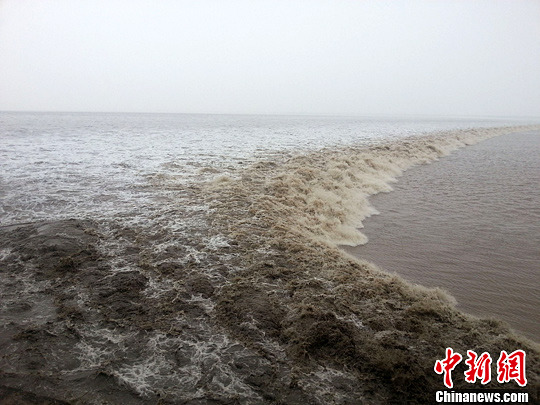 9月7日下午1时许,天下奇观钱江潮一线横江,如约奔涌而至。中新社发 邵思翊 摄
