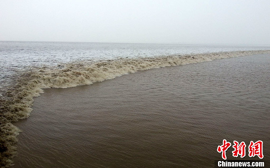 9月7日下午1时许,天下奇观钱江潮一线横江,如约奔涌而至。中新社发 邵思翊 摄