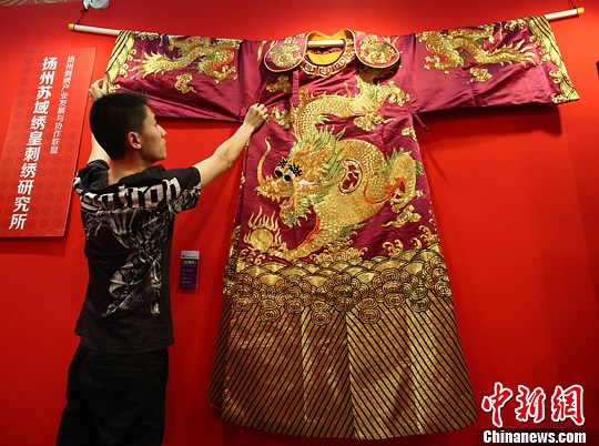据来自苏州的设计师林臻崎介绍,这件刺绣作品名为《包公官服》,花费半年多的时间、用纯手工盘金绣工艺绣制而成,图案上绣有四爪金龙,衬托出包公的清廉和伟岸的身影。
