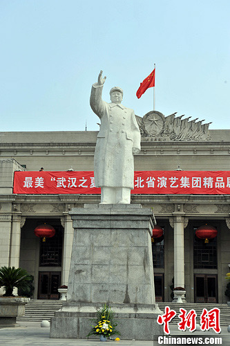 武汉民众摆放鲜花纪念毛泽东逝世37周年