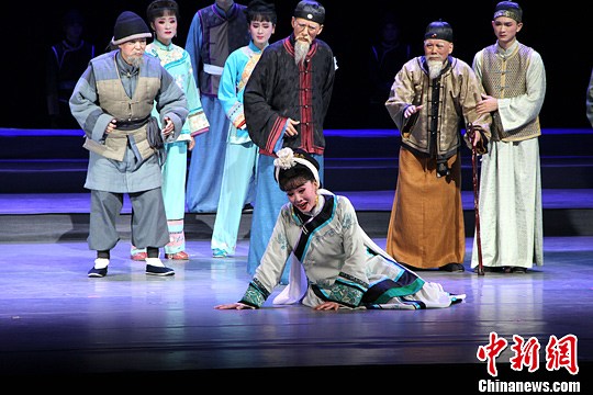 图为戏曲《徽州往事》演出现场,“黄梅戏皇后”韩再芬精彩的表演。黄梅 摄