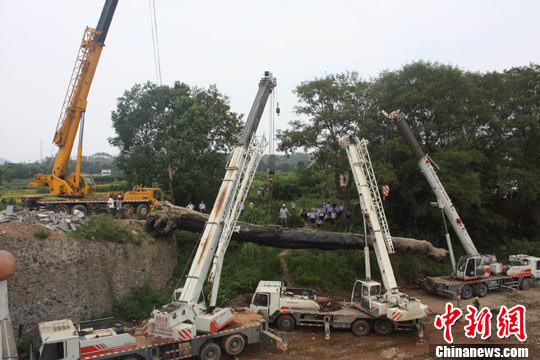 江西24米长古树“搬家” 重达50吨动用五台吊车