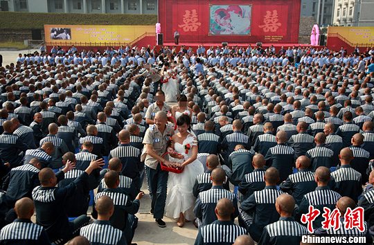 服刑人员举集体证婚仪式现场。杨永华 摄