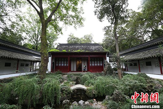 9月23日,游客在新修缮完工的明孝陵东侧定林山庄的“刘勰与文心雕龙纪念馆”内参观。中新社发 泱波 摄